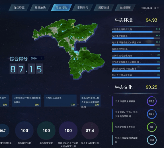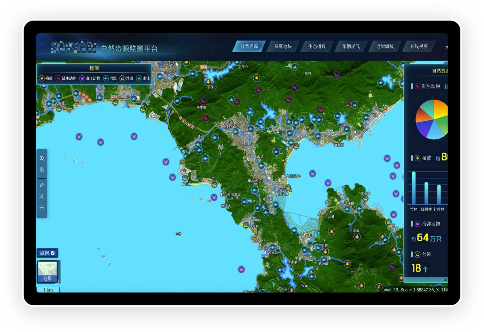 基于遥感影像、物联网与人工智能等技术,构建“天、空、地”一体化立体监测平台,实现对生态环境、水环境、大气环境等进行一体化、全面、智能管控,通过构建生态环境监测一张图,直观、动态、的呈现XX地区生态的时空状态,借助平台中所见即所得的直观图形拖放界面,实现无需编写代码可快速定制各类大屏、移动等应用,为生态环境状况分析判断决策及执法提供支持依据、提高环境管理部门的工作效率,加大生态环境监测监控能力。